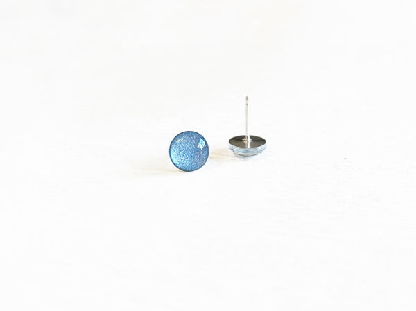 Glacier blue shimmer stud earrings by Ear Sugar hypoallergenic made in the USA