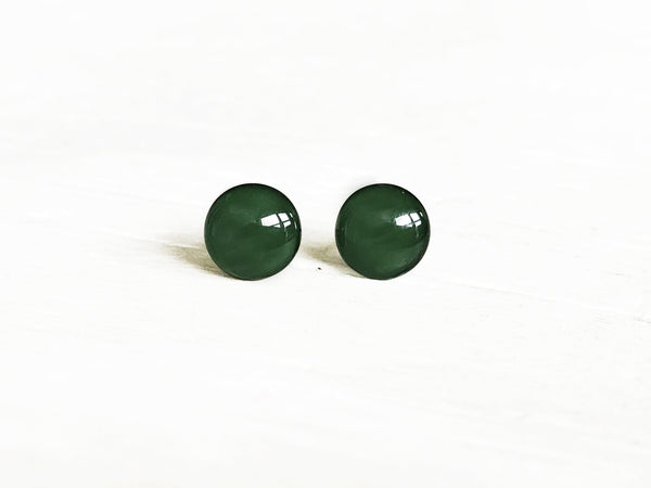 Green Machine dark green stud earrings by Ear Sugar made in the USA