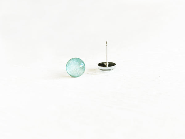 Sea Green shimmer round earrings by Ear Sugar hypoallergenic made in USA