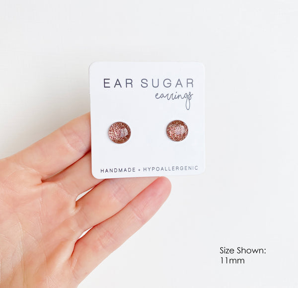 Mineral glitter stud earrings by Ear Sugar handmade in the USA