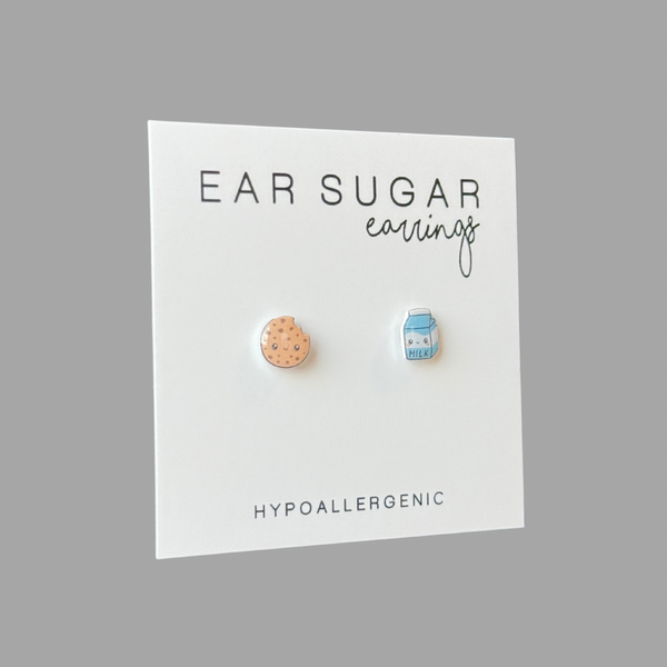 - Earring Measurements: cookie 0.75in wide x 0.75in tall x 1.8mm thick / milk 0.65 wide x 0.8 tall