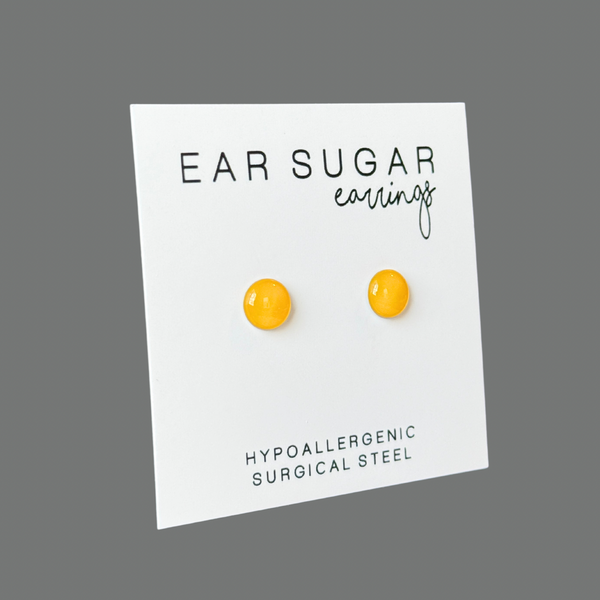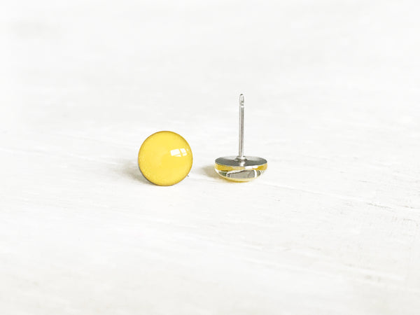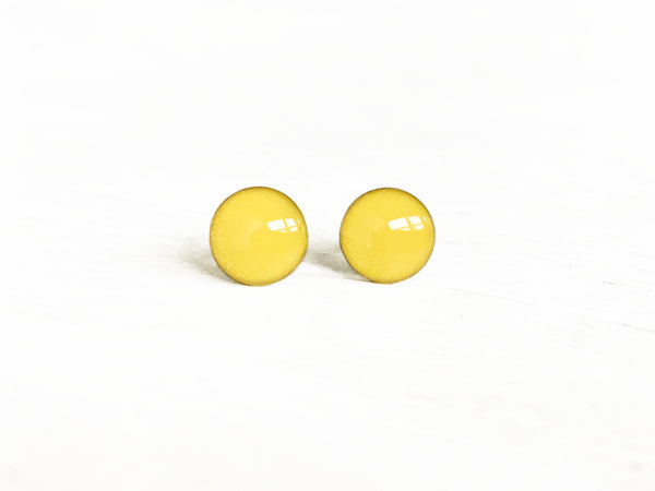 Lemon yellow round stud earrings by Ear Sugar hypoallergenic made in the USA